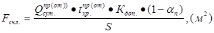 где Вскл – ширина склада, м. Для открытых складов ширина рассчитывается в зависимости от принятой схемы комплексной механизации погрузочно-разгрузочных работ по формуле: при двухконсольном электрокозловом кране: Вскл =Lпр –2bт (м) (4.4) где Lпр - длина пролёта крана, м; bт – ширина площадки, отводимой для обеспечения техники безопасности, bт=1 м; Повагонные отправки: Lскл приб. =1540/30=51,3 м=54 м Lскл отпр. =1137/30=37,9 м=42 м Результаты расчетов сведем в таблицу 4.1 Таблица 4.1
