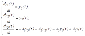 В результате дифференциальное уравнение 3-го порядка представится в виде системы трех дифференциальных уравнений 1-го порядка: