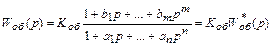 Передаточная функция для статического объекта имеет вид: