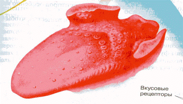 Вкус - ощущение сложное. Оно, как правило, возникает при восприятии пищи одновременно с запахом. Все вещества, которые растворяются в воде, обладают вкусом. Вкусовые рецепторы расположены на поверхности языка - на вкусовых сосочках (рис.3). Рисунок 5. Вкусовые сосочки Разные участки языка по-разному ощущают вкус. По нервным волокнам сигналы поступают в определённые отделы головного мозга. При обычном восприятии пищи работают все вкусовые рецепторы языка. Мозг создаёт сложный вкусовой образ, который возникает, когда мы едим мороженое, лимон, клубнику и т.д. Обоняние обязательно участвует в восприятии пищи. Вспомните, насколько меняется вкус пищи, когда у нас исчезает обоняние во время сильного насморка. В создании вкусового образа пищи обязательно участвует также и осязание. Ведь мы оцениваем пищу не только по её химическим свойствам, но одновременно и по механическим и температурным признакам. Например, вкус мороженого возникает у нас при одновременном появление всех этих ощущений. Значит, обонятельная и вкусовая сенсорные системы работают в тесном взаимодействии с кожей. Учёные выделяют четыре основных вкуса: кислый, сладкий, солёный, горький. Все остальные оттенки вкуса – смешанные. Что же касается таких оттенков вкуса, как «острый», «жгучий», «вяжущий», то это вообще не вкусовые ощущения в строгом смысле слова. К примеру, вкус горчицы в первую очередь определяется её тепловым воздействием, а «острый вкус» лука – в основном его запахом. Человек, жующий с закрытыми глазами и зажатым носом, не отличит его вкуса от вкуса яблока. Почему язык белый? Почему доктора так стремятся увидеть твой язык? Ведь не длину они хотят измерить! Всё дело в том, что язык честно докладывает о состоянии организма. Плохо работает пищеварительная система, и язык покрывается белым налётом, а если больного одолела скарлатина, язык будет очень похож на малину. Так и говорят: «малиновый язык». Он становится очень ярким, и все сосочки врастопырку. При других заболеваниях язык может покрыться желто-зелёным налетом, трещинками или ямками. Так что твой язык и без слов может много рассказать доктору. Нужен ли язык животным? Вкусовые ощущения не имеют для кошек практического значения, но у нее на языке есть вкусовые сосочки, что помогает кошке различать вкус пищи, то есть она всегда в состоянии отличить сладкое от кислого и горькое от сладкого и соленого. Одним словом, кошка разбирается в блюдах, предпочитает пищу, которая ей нравится; известны кошки-гурманы, лакомки. Вошедшая в поговорку разборчивость в пище у кошки обусловлена прежде всего хорошим нюхом. Среди млекопитающих только люди отличаются умением членораздельно произносить слова и свободно ними оперировать. Это становится возможным благодаря наличию у человека, как развитого речевого аппарата, так и необходимого «программного обеспечения» в головном мозге. Собака, напротив, лишена и первого, и второго, а потому она способна воспроизводить крайне ограниченный диапазон звуков, которые отличаются постоянством. Учитывая схожесть строения языка человека и шимпанзе, у обезьян было бы больше шансов заговорить, если бы не отсутствие необходимых образований в головном мозге. Органы вкуса у собак представлены вкусовыми сосочками, расположенными на языке. Однако собака не обладает утонченным вкусом, кото