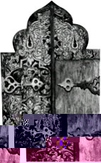 Датированные изделия с росписью "под фон", относящиеся к середине XIX века, почти единичны. В Нижегородском краеведческом музее находится дуга, помеченная 1857 годом. Ее роспись имеет композицию, широко распространенную при декорировке таких видов изделий: парные геральдические золотые львы у основания и розетка наверху у отверстия для прикрепления колокольчика. Основная часть поверхности дуги украшена орнаментом, напоминающим рисунки узорных тканей с золотистыми листьями и гроздьями винограда. Роспись исполнена рукой опытного орнаменталиста. Тщательно и тонко выписаны замысловатые изгибы виноградных лоз. И хотя роспись интересна своей затейливостью, однако в ней нет той смелости и свободы письма, которую мы особенно ценим в Хохломе. На более поздних дугах орнамент "под фон" исполняется уже в более непринужденной манере.