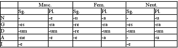 Examples of wу-stems: beadu (a battle), nearu (need), lжs (a beam).