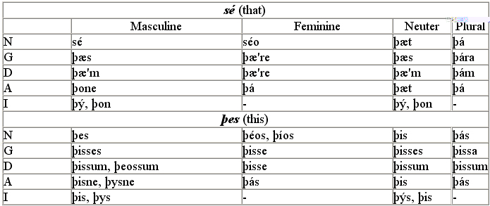 Examples of a-stems: earm (an arm), eorl, helm (a helmet), hring (a ring), mъю (a mouth); neuter ones - dor (a gate), hof (a courtyard), geoc (a yoke), word, dйor (an animal), bearn (a child), gйar (a year).
