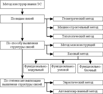 Конструирование может быть реализовано различными методами. Существующие методы конструирования ЭС подразделяются на три взаимосвязанные группы (рис. 1):