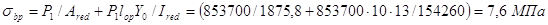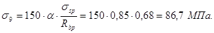 . Напряжение в бетоне при обжатии в соответствии с формулой
