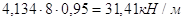 Расчетная нагрузка на 1 м2 при ширине плиты 1,2 м с учетом коэффициента надежности по назначению здания γn= 0,95: постоянная g = 4,134*1,2*0,95 = =4.71 кН/м2; полная g+v = 23.334*1.2*0.95=26.6 кН/м2