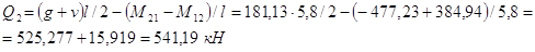 Нормативная нагрузка на 1 м2: постоянная g=3.680*1.2*0.95 = 4.19 kH/м2; полная: g+v = 19.680*1.2*0.95 = 22.43 кН/м2