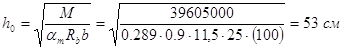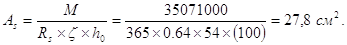 , бетон класса В35 , Rb=19,7 МПа, арматура из стали класса А-III, Rs=360 МПа,