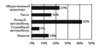 Основная доля регулярных посетителей салонов красоты г Новосибирск (42%) имеют личный транспорт и добираются до салона красоты на нем, 23% из них пользуется общественным транспортом, а 16% прибегают к услугам такси [диаграмма 10].