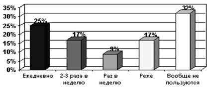 68% респондентов пользуется Интернетом, причем каждый четвертый представитель этой группы тАФ активный пользователь, заходящий в сеть ежедневно [диаграмма. 12]. Соответственно, Интернет может рассматриваться как перспективный канал информации о салоне красоты.