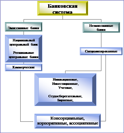 В повседневной практике банк нам, прежде всего, представляется в роли учреждения или организации. И действительно не редко мы можем встретить такие выражения как Влбанковская организацияВ» или Влбанковское учреждениеВ». На самом же деле банк намного более широкое понятие. Банк выступает на финансовом рынке во всем многообразии ролей, тем самым, образуя разветвленную банковскую систему и инфраструктуру. Рассмотрим их более подробно.