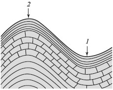 Рис. 21. Синклинальная (1) и антиклинальная (2) складки