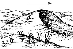Рис. 27. Строение бархана (стрелкой показано направление ветра)