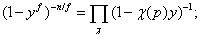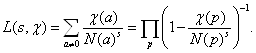 Ва- L-функция Дирихле, произведение справа распространяется на все неглавные рациональные характеры по модулю m.